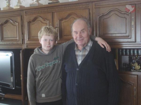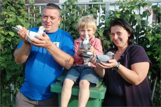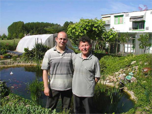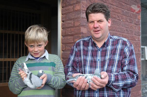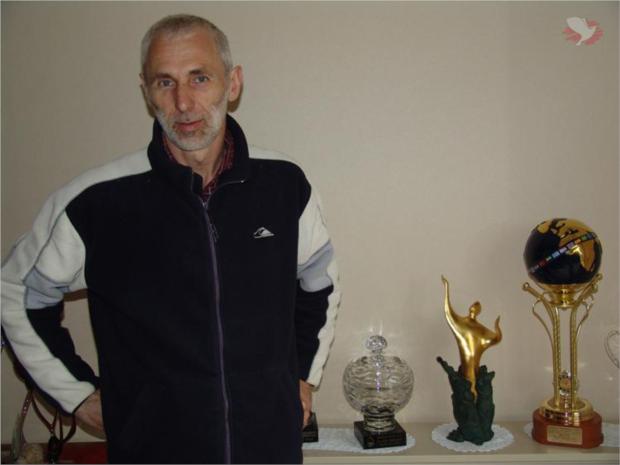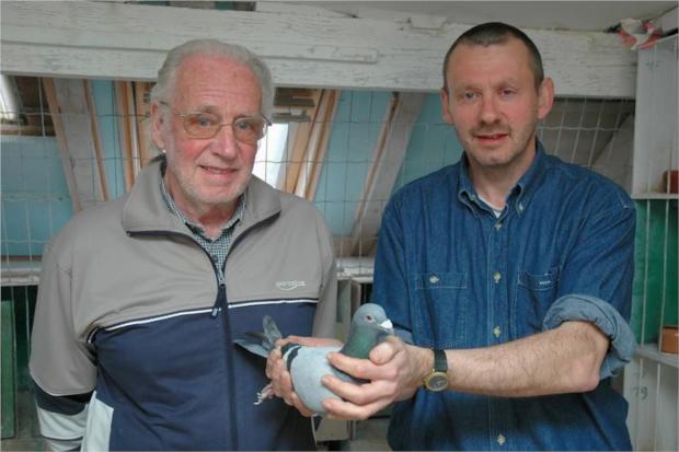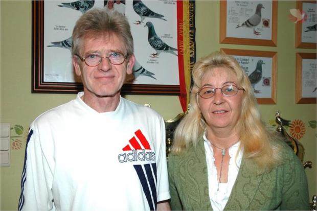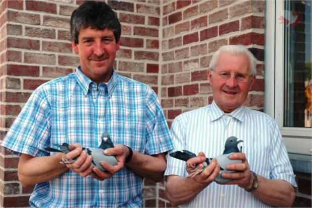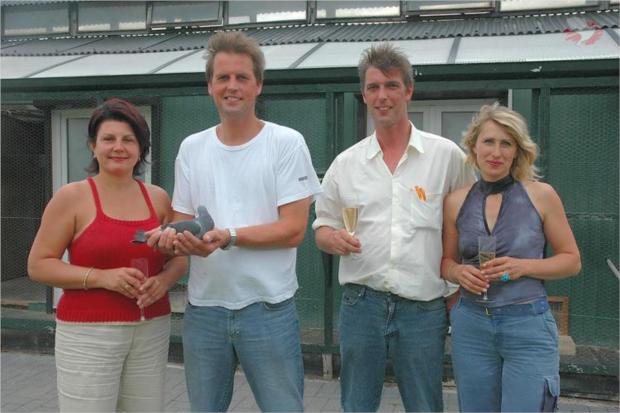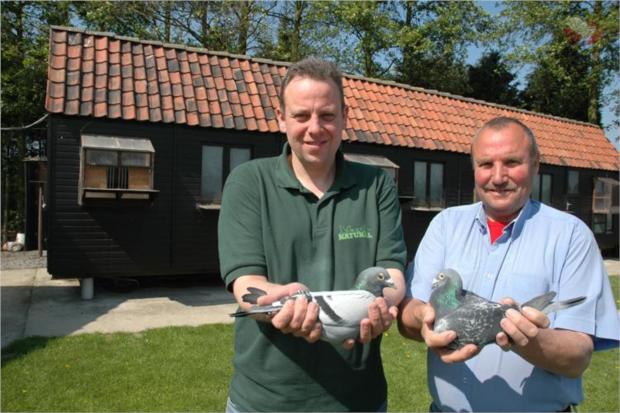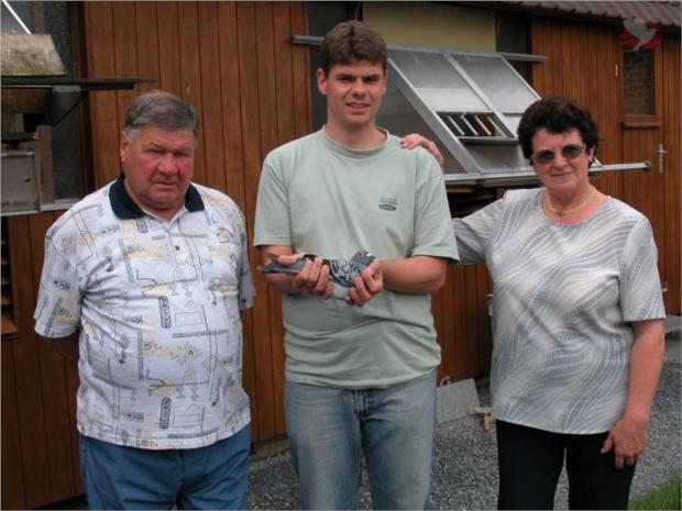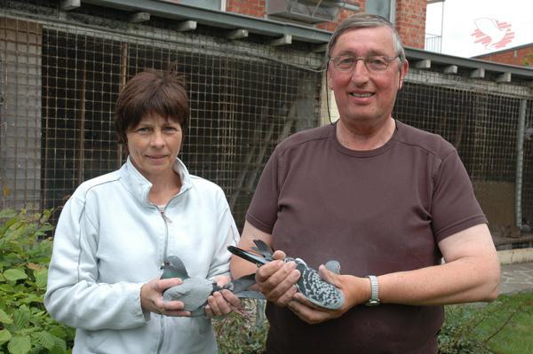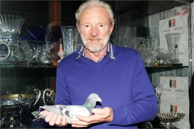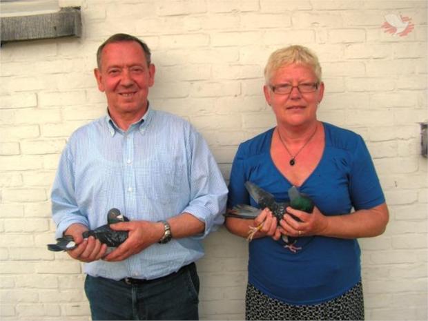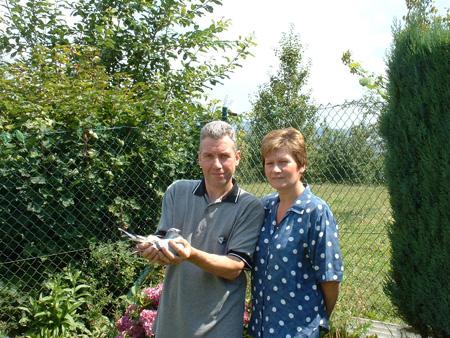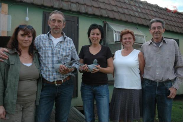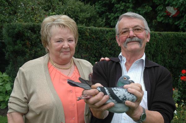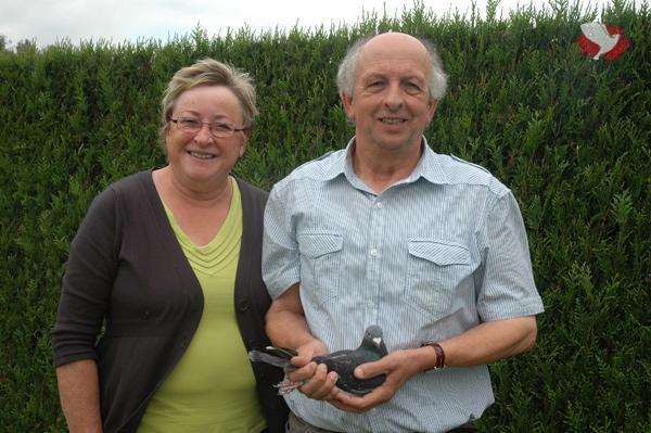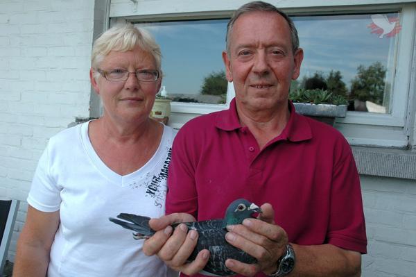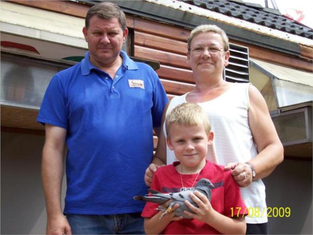 Jos Joosen - Na mão com o irmão do pombo que lhe adquiri e que ganhou 1º Internacional Perpignam