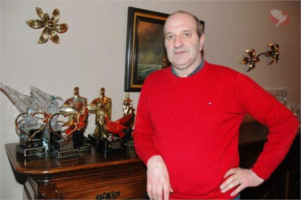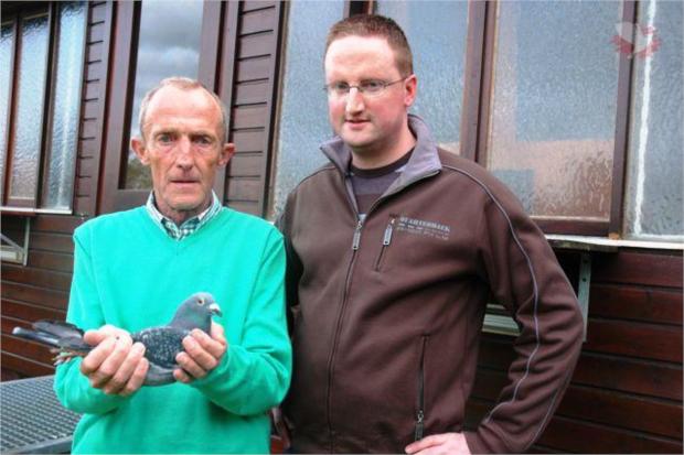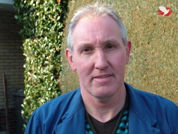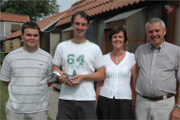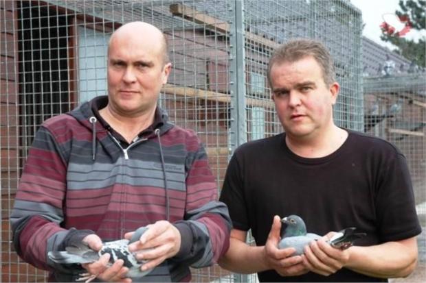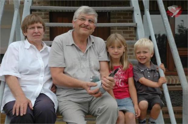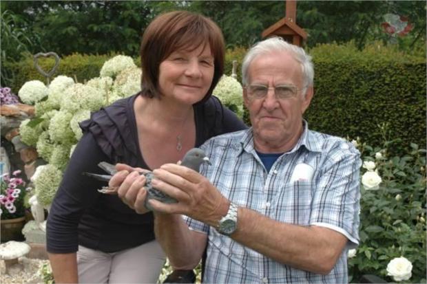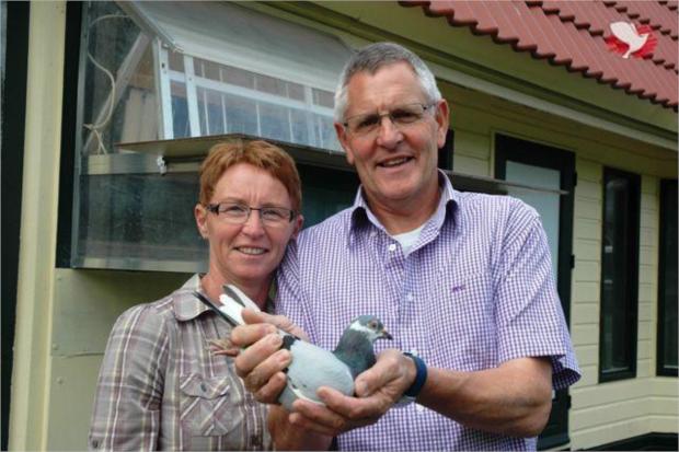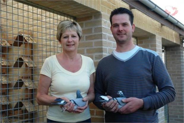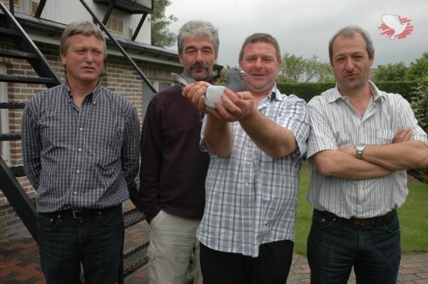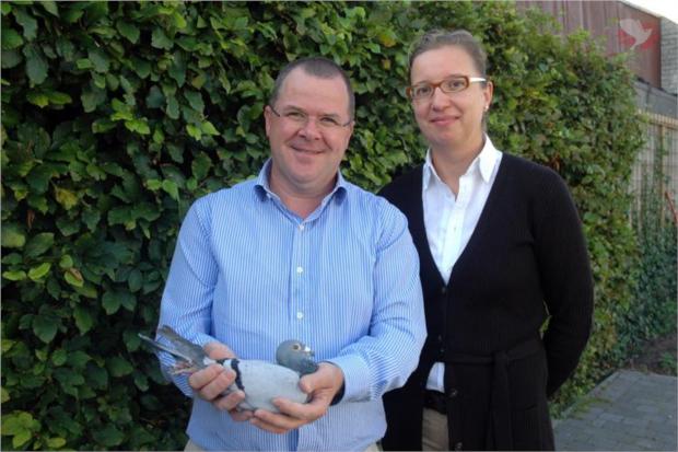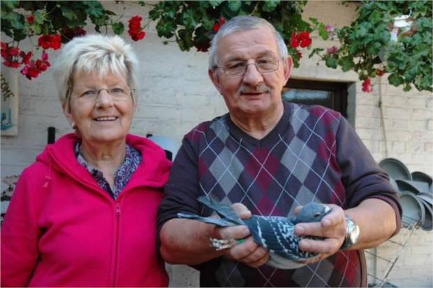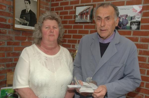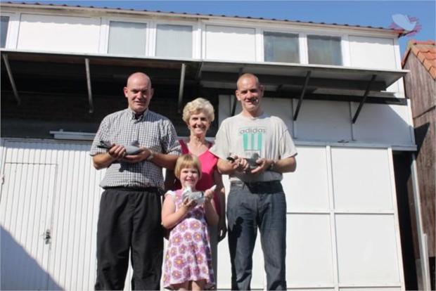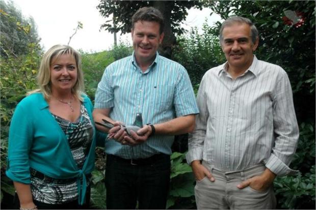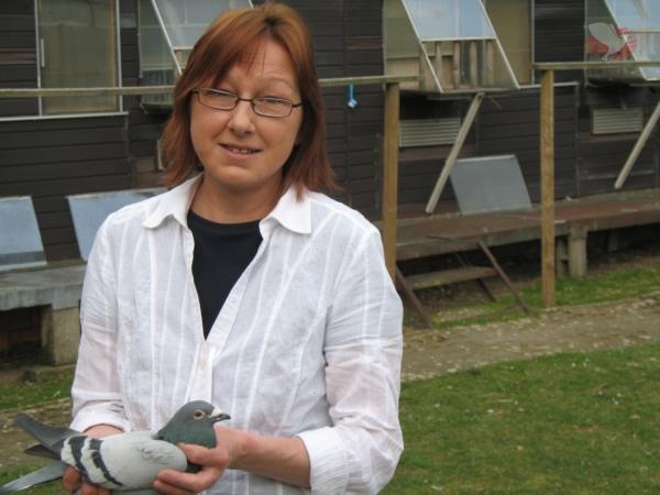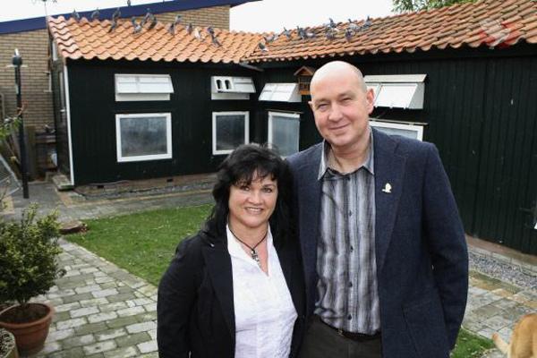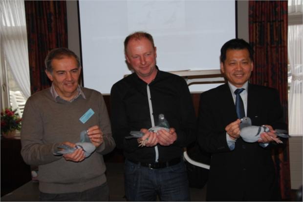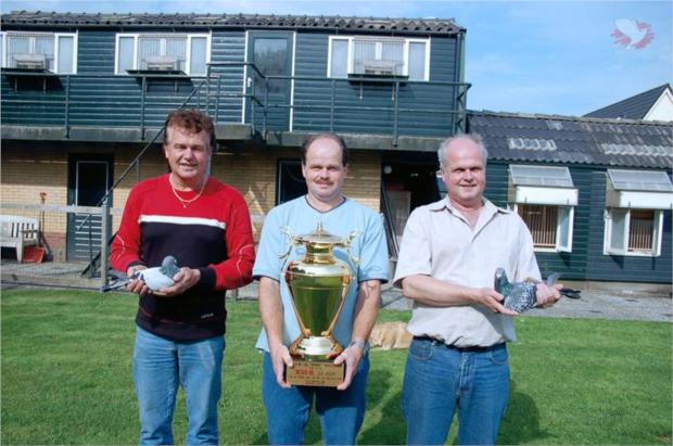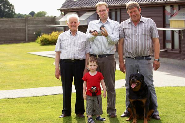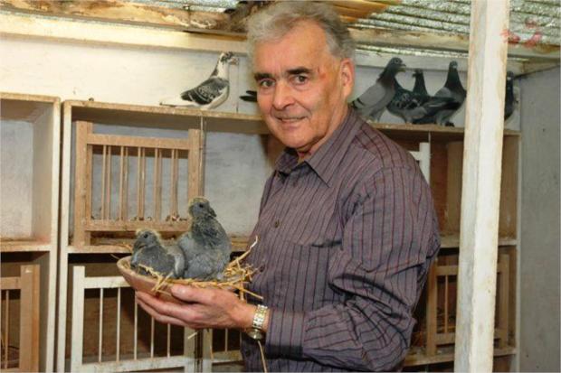 Jos Joosen - Na mão com o irmão do pombo que lhe adquiri e que ganhou 1º Internacional Perpignam