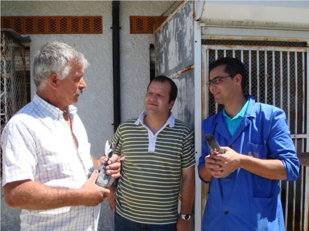 A Jantar com o meu amigo Julio ( Columbofilo de Madrid). Fui em trabalho para Madrid, mas a noite, tive de falar de pombos, combinei então um jantar com o Julio. Foi um jantar maravilhoso. No final do jantar ofereci ao Julio um casal de Dragões ( que tinha levado comigo no carro ) para que possa cultivar esta linha além fronteiras. Boa sorte amigo...
