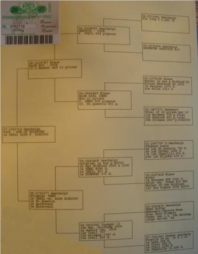 Pai:NL08-1371844 - Filho do De Huron. Huron é neto do Felle x Van Moorsel. Mãe é uma irmã do Astro. Filha do Casal Laguna x Twingo