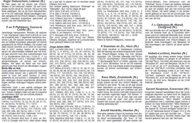 • 2008 tegen 14372 duiven 37e, 459e, enz. 29 jaarlingen mee 14 prijzen.