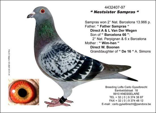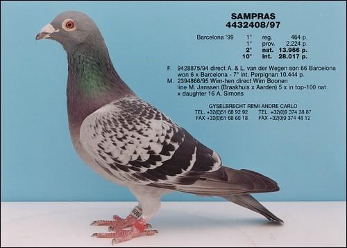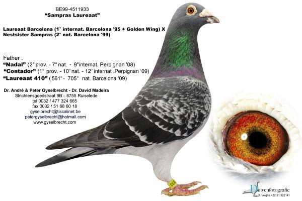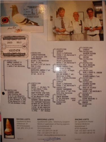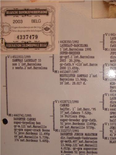 Este pombo é um neto do 1º Internacional de Barcelona ( Laureat Barcelona) e sobrinho do 2º Nacional de Barcelona ( Sampras).