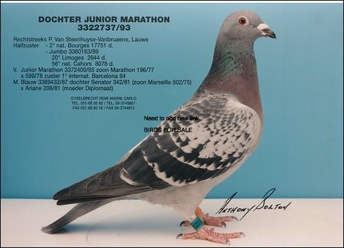 Filha de um neto do Laureat Barcelona. O pombo em venda é Neto do Laureat Barcelona.