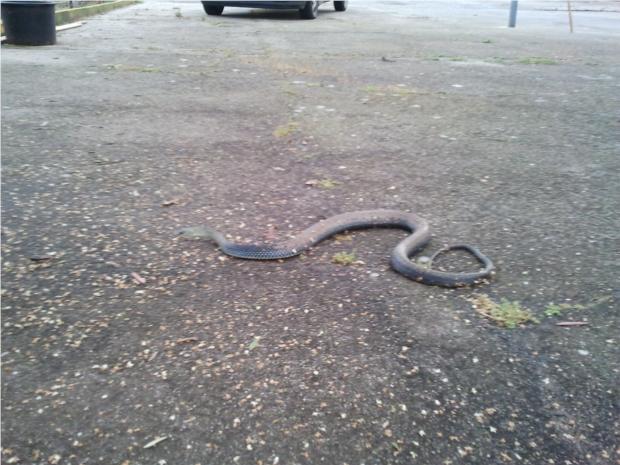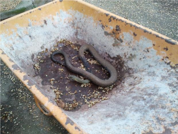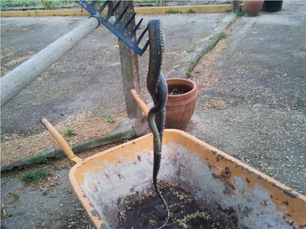 Ontem ao ir tratar dos pombos a tarde, descobri isto dentro do pombal, empoleirada entre o tecto falso e o chão do pombal....escusado será dizer que apanhei um susto daqueles a moda antiga....provavelmente já lá andava a uma semana, porque os pombos esta semana andavam a ter um comportamento muito estranho, não queriam entrar e ficavam todos no corredor e não nos poleiros.....eu pensava que era mais uma vez gatos, mas estava enganado...