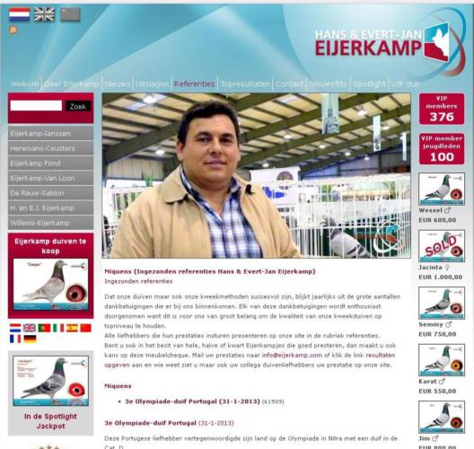 Num projecto de divulgação da columbofilia Nacional. Eis que chega ao site dos Eijerkamp o meu amigo José Carlos Miguens.