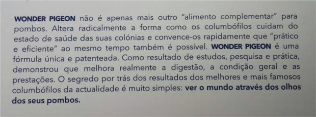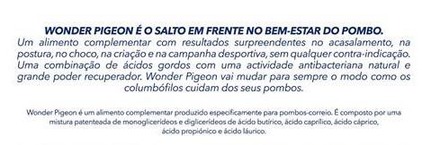 Mesmo na presença de infecções de Circo-virus, o Wonder Pigeon, reforça o metabolismo e aumenta a resistencia natural.