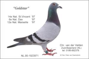 Muitos de voces ainda não ouviram falar nesta linha de pombos, mas acreditem estamos a falar de pombos de top. Um columbofilo apenas com 9 pombos tem todos os anos pombos a discutir os nacionais na Holanda. Sendo o seu melhor resultado o 1º Internacional de Barcelona 2004. Vão aos sites Holandeses e procurem nos Barcelonas, Narbones, Perpignam, Marseille este nome. Talvez tenham uma agradavel surpresa. 1e Nat. Marseille ‘00 5.739 d., 2e Nat. Dax 8.243 d., 3e Nat. Dax 16.046 d., 3e Nat. Dax 12.186 d., 4e Nat. Barcelona 5.229 d., 6e Nat. Bordeaux 5.172 d., 10e Nat. Dax 13.308 d., 12e Nat. Bergerac 22.510 d., 13e Nat. Bergerac 22.510 d., 15e Internat. Barcelona 20.129 d., 15e Nat. Bordeaux, 4.878 d., 18e Nat. Marseille 4.601 d., 21e Nat. Barcelona 8.140 d., 26e Nat. Soustons 12.579 d., 27e Nat. Barcelona 8.582 d., 1e Internat. Barcelona ’03, 24.970 d……