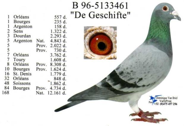 Ace Pigeon KBDB Ace Pigeon BDS Grandfather of 1st National Bourges of 9,759 birds, 1993 Great-Grandfather of 'Olympiade' Gran Canaria Cat Sports Great-grandfather of 1st Ace Pigeon H 1994 KBDB Koninx Jaak, Zonhoven |