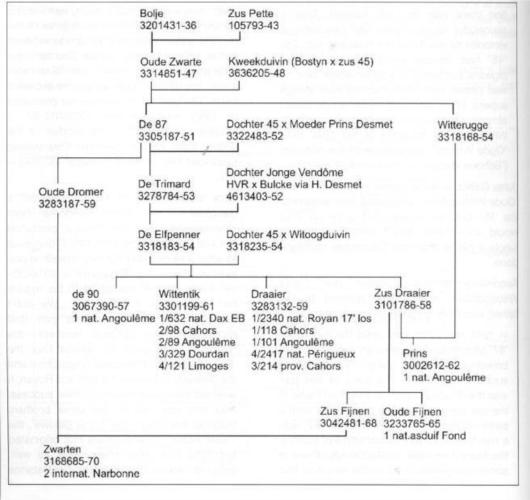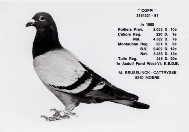 BE 89-6040787 conhecida como Kleintje ou Daughter National I Schellens ( Pai ganhou 1º Nacional de Bougues entre 7.927 p. e 1º Provincial Orleans entre 4.301 p.)