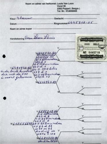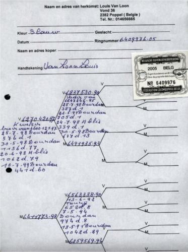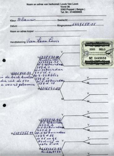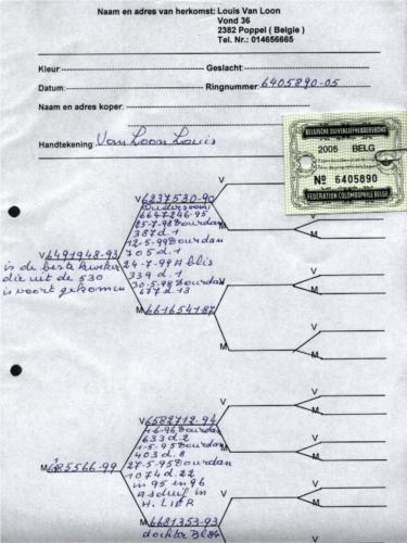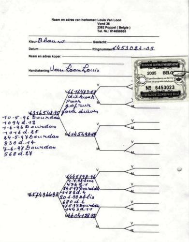 Em 2008 visitei Andre Dierick de Rumbekke e uma fêmea que compramos nessa visita esta a revelar-se uma grande reprodutora em casa do meu amigo Paixim, sendo mãe de uma serie de pombos com varias classificações de Top. Alias a “ Velha das Apostas “ como a fêmea é conhecida entre nós, porque o nome de Jenny Dierick não é facil de fixar, é também ela bisneta do “Sultan”.