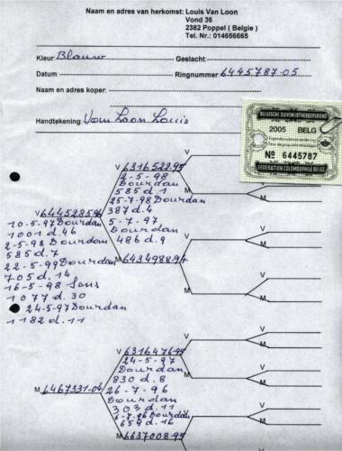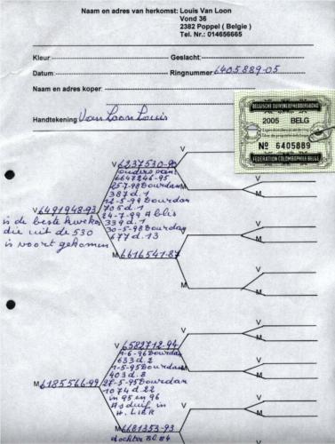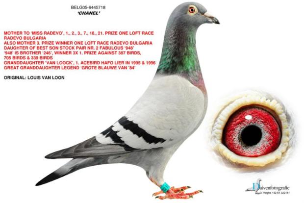 O BE 92 – 3138647 “ Schicht” em 1996 reproduziu o “ De Favori” BE 96 – 3198825. Este pombo em 1997 ganhou 12 x 1º e sagrou-se pombo AS da West Flandres ( 7.000 columbofilos).