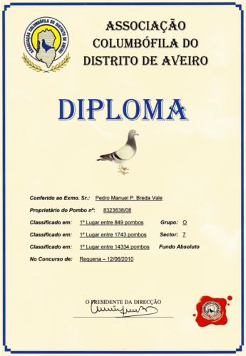Diploma referente ao 1º Lugar Distrital de Requeña II - Campanha de 2010