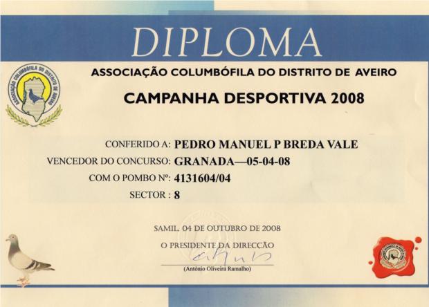 DIPLOMA REFERENTE AO 1º LUGAR DE GRANADA NO SECTOR 8 (4º TODO O DISTRITO / 23728p.)