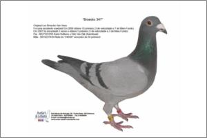| "Broeckx 347" Original Leo Broeckx - van Hees. Foi uma excelente voadora, em 2006 obteve 10 prémios (3 Velicodade e 7 Meio-Fundo) em 2007 foi encestada 5 vezes e obteve 5 prémios (3 Velocidade e 2 Meio-Fundo).
