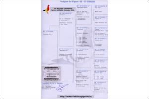 | "Kannibaal Saloio" Pombo de excelentes linhagens, por parte de pai, Flor Engels, Van Loon e Kannibaal, por parte da mãe Janssen "Porsche Bond".