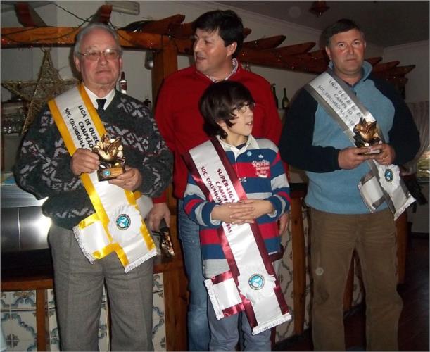 Os vencedores da primeira edição do Campeonato da Liga Ano de 2013 Em 2013, participei em poucas provas, pois a equipa de vôo era de apenas 20 pombos. A Sociedade Columbófila de Torres Vedras adquiriu uma nova viatura para transportar os pombos, passamos a ter de levar os pombos a concentração devido ao Presidente da Zona Oeste á revelia das colectividades associadas vender (dar) a galera á ACDL (espero que as entidades oficiais investiguem a denuncia apresentada). Colaborei na realização dos treinos realizados na nova viatura juntamente com o Presidente do Concelho Técnico, Miguel Custódio.