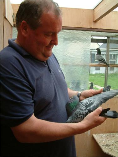 Dirk van Dijk - em mãos o famoso "Kannibaal" Marcel Sangers nos seus novos pombais