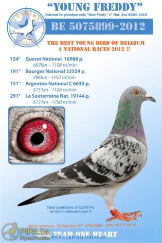 Young Freddy, o melhor jovem pombo belga de 2012 em 4 provas nacionais