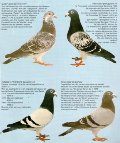 Por 80 anos, entre 1914 até 1994, foi columbofilia nos mais altos voos. Este foi o maravilhoso desempenho da estirpe Tournier, que só poderia provavelmente ser compensada pela Janssens. Embora não se possa excluir que em algum lugar alguma tensão tradicional resistiu à devastação do tempo, foi por todos os meios muito improvável.