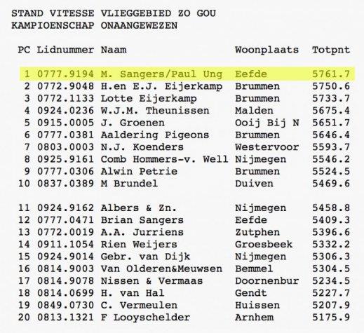 A corrida de Tienen (8 de junho) marca o final da competição de sprint para as aves antigas, e viu Sangers-Ung tomar o primeiro lugar no campeonato regional. Marcel, seu filho Brian e sua parceira Chantal Vredeveld estão trabalhando juntos para alcançar grandes resultados, e sua abordagem foi bem sucedida novamente nesta temporada. Vamos dar uma olhada nas conquistas de Sangers-Ung e Brian Sangers nas corridas de sprint deste ano: