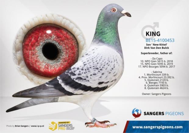 Seu pai é o King, um 100% Van Den Bulck e também o pai de Da Capo, vencedor de um 10º NPO Gien 5,615 p. 2018, um 15º NPO Gien 9,395 p. 2017, e um 17º NPO Bourges 5,094 p. King é filho de New Kittel, um substituto da Olympiad Pigeon e irmão de Kittel.