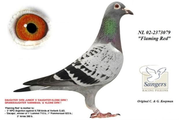Filha da nossa 1843867/06 NL “Eagle Eye” original Marcel Sangers (linhagem Sangers/Koopman), é neta do “Eagle Eye” pombo campeão Nacional de fundo da Holanda 2000, o seu pai é 2185679/05 NL “Game Boy” filho do “Eagle Eye” e da “Azira” a sua mãe é 2185645/05 NL “Kuli” filha do “Rubin” e de “Flaming Red” pombo de origem Koopman.