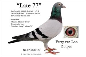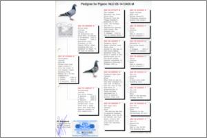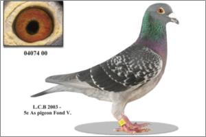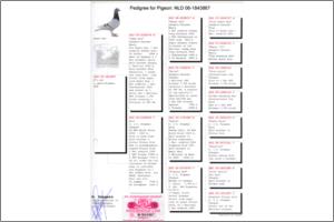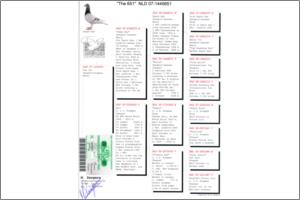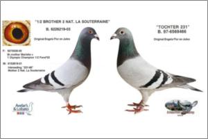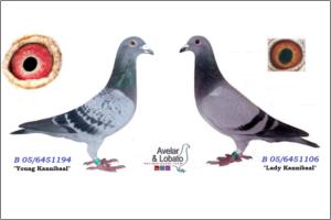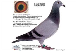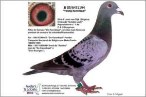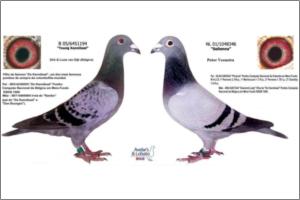 "KanniBlue" Dirk van Dijk x Flor Engels Um irmão legitimo foi 15º geral e 2º Melhor pombo estrangeiro na prova final do Upland Derby (Alemanha). O seu pai é neto consanguíneo do "Kannibaal" Dirk van Dijk e a sua mãe é neta consanguínea do "231" Flor Engels.