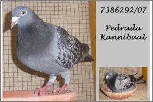 "Pedrada Kannibaal" Esta femea foi tirada para a reprodução. Irmã legitima da 846/07 anilha de prata de velocidade em 2009 na SCTV com as classificações: Cáceres I = 29/1471 Cáceres II = 23/1470 Cáceres III =19/1490 N.Sª Enxara I = 197/1440 N.Sª Enxara II = 188/1449 N.Sª Enxara III= 7/1319 Talarrúbias = 4/1445 Maqueda = 183/1319