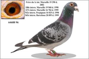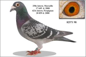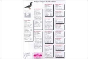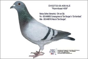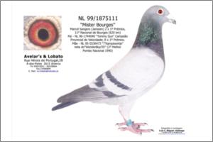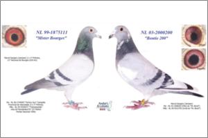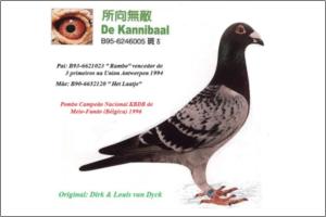"KanniBourges" Dirk van Dijk x Marcel Sangers. Filho de un neto consanguíneo do "Kannibaal" pombo Campeão Nacional de Meio-Fundo da Bélgica e de uma neta do "Tommy Gun" Marcel Sangers pombo Campeão Provincial de Velocidade.