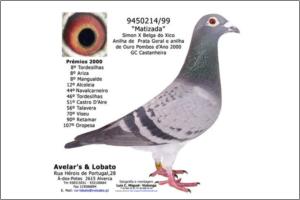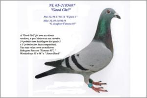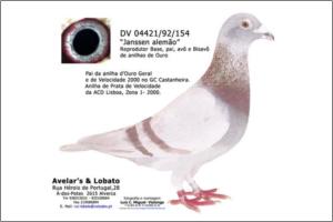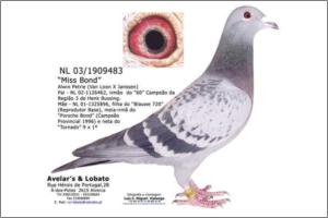 "Miss Bond Speedy" Original Avelar & Lobato JanssenArendonk Meia irmã da Anilha de Prata de Meio-Fundo e Anilha de Prata de Pombos Ano 2005 no GC Vialonga, 4ª Melhor pombo de Meio-Fundo na ACDL - Zona 1. irrmã do "100" o qual ganhou m 1º com mais de dois minutos de avanço numa prova de velocidade com uma média superior a 2000 m/m!.