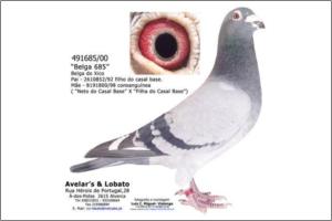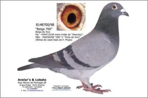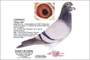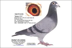 "Mister Belga" Original Avelar & Lobato Janssen x Belga do Xico Azul A sua irmã de ninho foi a melhor voadora de Velocidade de Avelar-Lobato em 2007. ganhou a anilha de Ouro de Velocidade no GC Vialonga com menos um encestamento porque foi encestada no GC Sobralinho tendo sido classificada