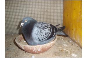 "Azul Kannibaal x Belga03" Esta pomba foi uma excelente voadora tendo sido em 2011 o seu melhor ano e na qual passou para a reprodução. É da linhagem do "Kannibaal"