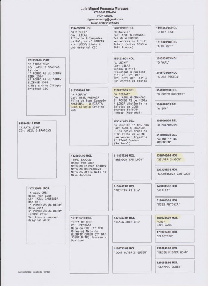 Do PT-7274305-17 que esta campanha participou em 7 PROVAS no PC ARAZEDE 2018, acabando por não regressar da 8va Prova (mas sem antes nas 7 provas realizadas deixar o digno registo 9º; 11º; 12º; 13º) e era 2do POMBO ÁS velocidade nesse momento.
