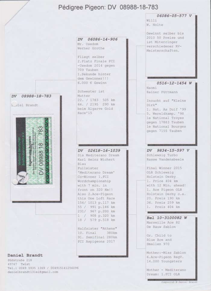 O DEN EURO dispensa apresentações, atualmente é uma referència mundial e esta presente em praticamente todos os pombais de norte a sul do país, o CASAL 17 é também ele um casal com reconhecidos créditos a nível nacional (de norte a sul), filhos, netos e bisnetos deste casal comprovam anualmente o valor dos seus progenitores.