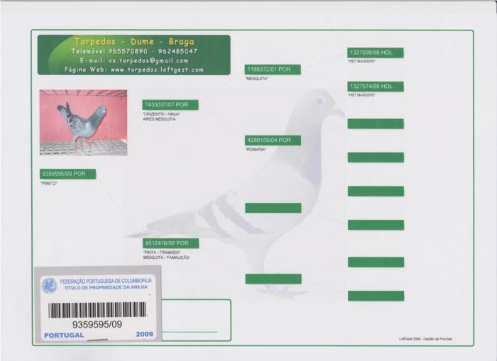 Irmã do 9º Pombo ÁS VELOCIDADE do Pombal Comunitario de ARAZEDE 2015 (3º Rio Moinhos; 1º Dogueno; 3º Algoz)