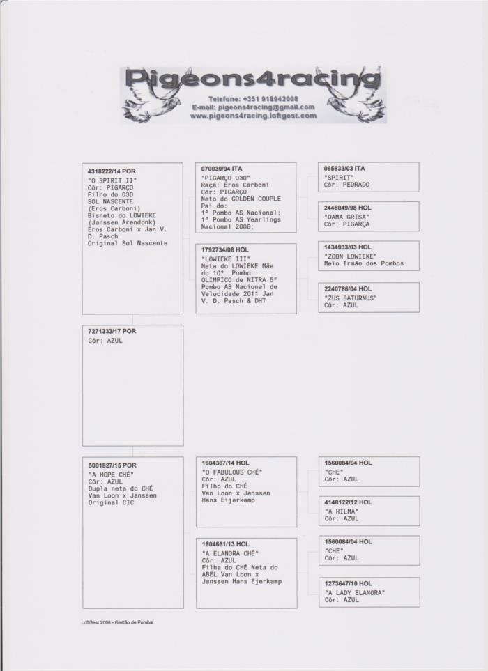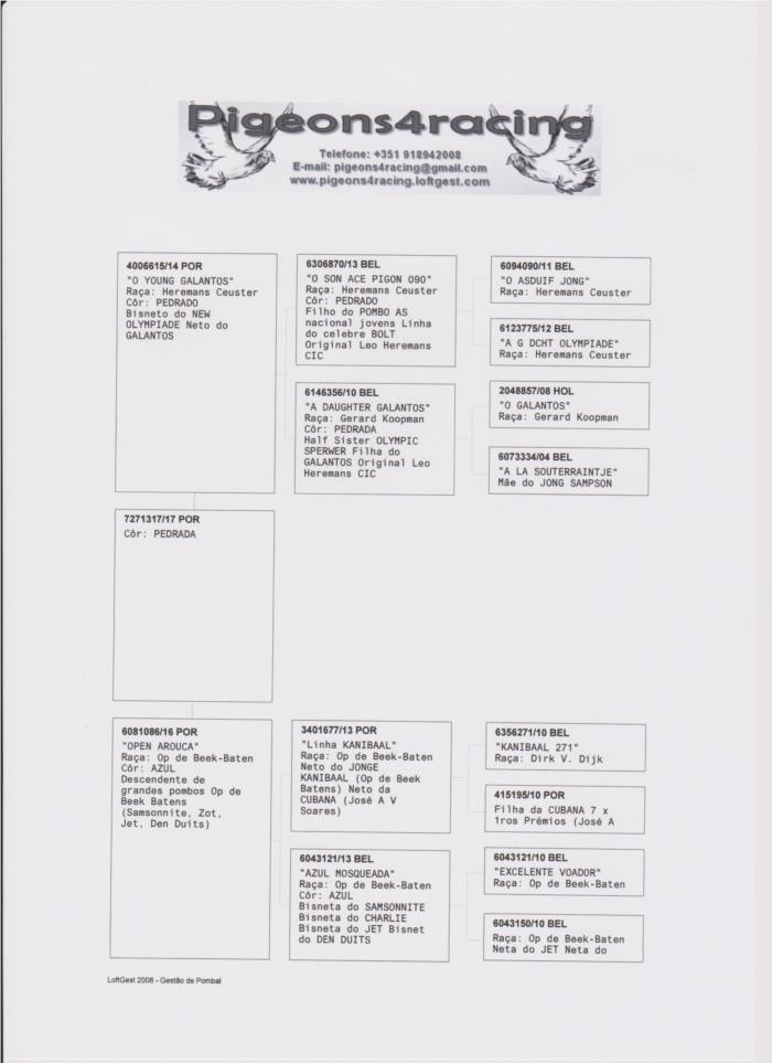 Encontra-se 1 macho de 2015 em CEDÊNCIA pelo valor de 75 CHIPS, este macho que se encontrava na reprodução foi adquirido por um columbófilo que este ano abandonou a competição e como tal solicitou a minha colaboração para a respetiva dispensa.