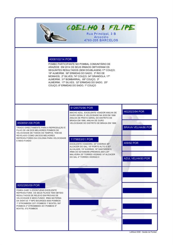 Podem ver os pombos disponíveis e os respetivos pedigrees em POMBOS/ CEDÊNCIAS!