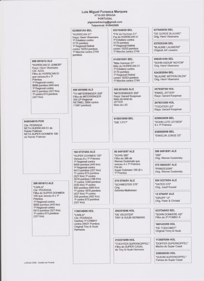 Linha de pombos presente no TOP 10 das finais de vários derbys em Portugal, ainda este ano na final do derby de Mira 2019, o 1ro e o 3ro classificados têm sangue deste criador.