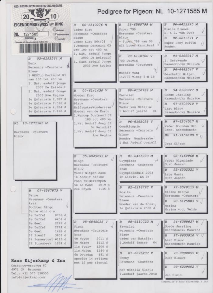 | FILHO DO FAMOSO "DEN EURO" Heremans Ceusters |