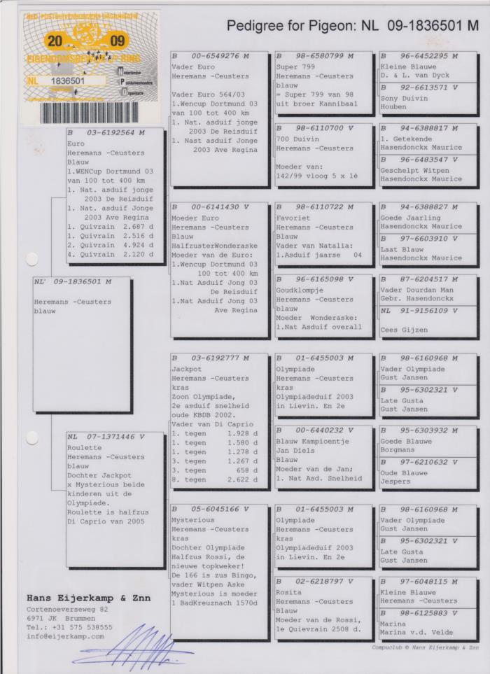 PEDIGREE DA MÃE: FEMEA AZUL NL-6192564-09 HEREMANS CEUSTERS (Original Eijerkamp & Zn)
