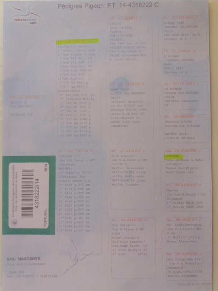 Durante este ano serão colocados em dispensa os FILHOS destes 8 CASAIS, no entanto quem pretender também os pode adquirir diretamente! Começando por esta femea AZUL, neta do PIGARÇO 030 do SOL NASCENTE (Eros Carboni).
