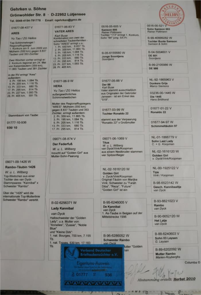 1 Irmão do SCAR - Pombo ÁS GOLDEN RACE 2012