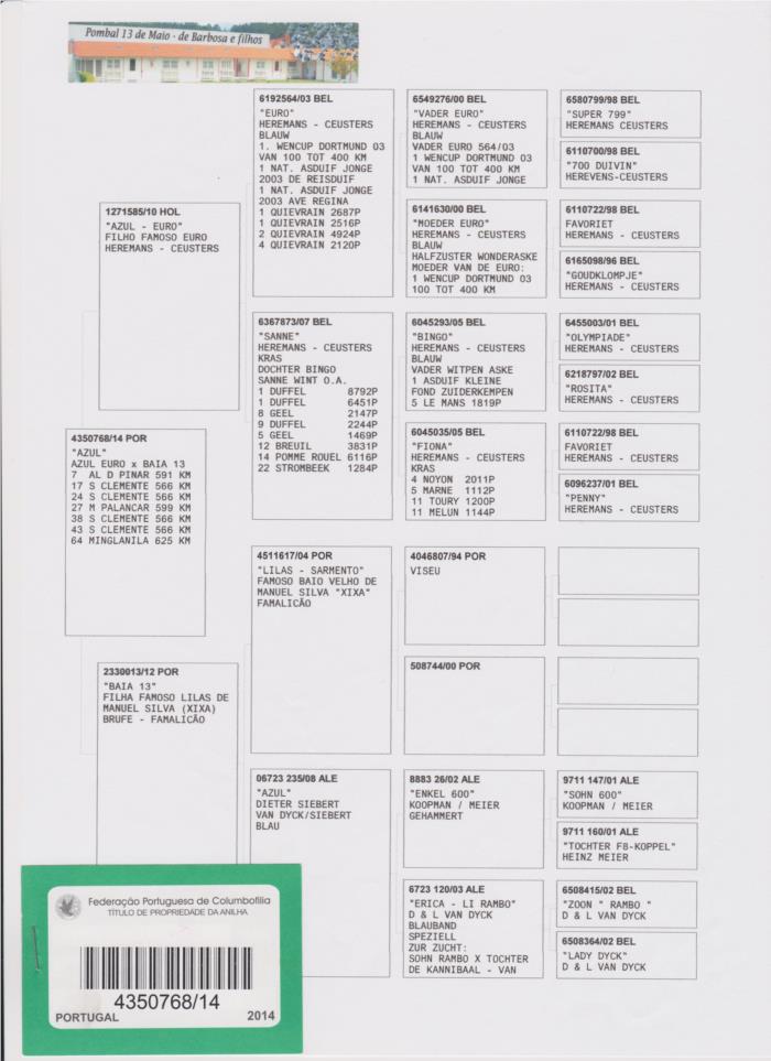 A irmã desta fêmea foi ANILHA DE BRONZE de FUNDO em 2017 na Soc. Columbófila de BRAGA.