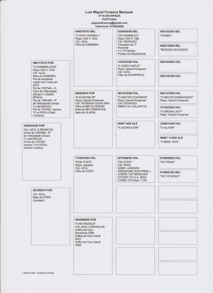 1/2 Irmão do 7297544 POMBO ÁS VELOCIDADE (Grupo 3) Distrito de BRAGA