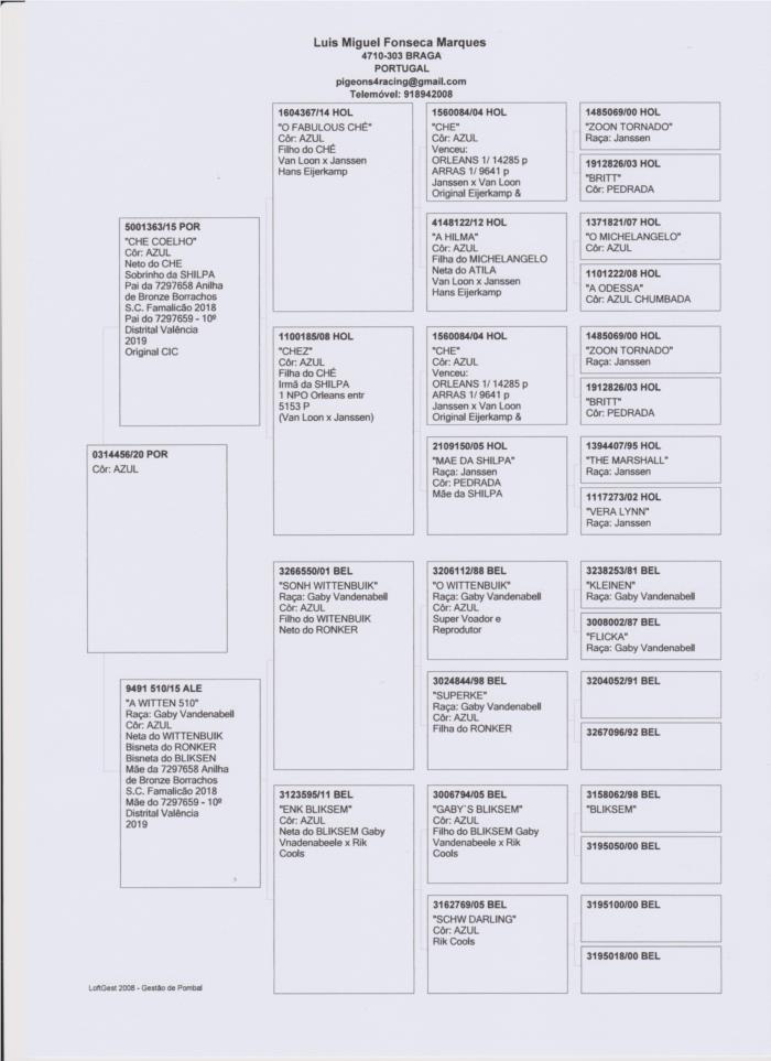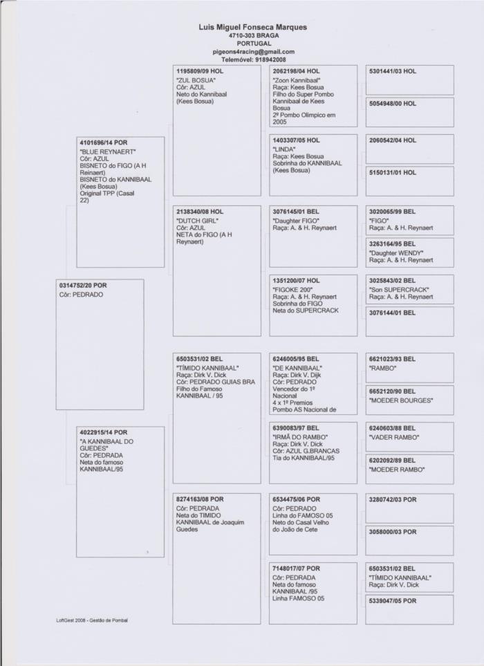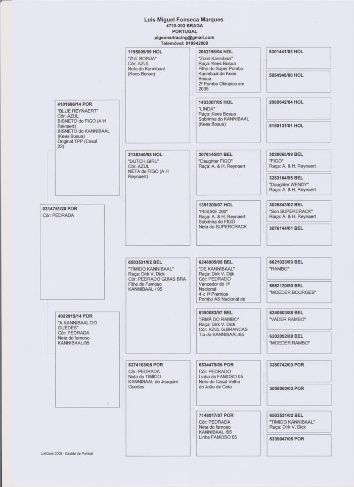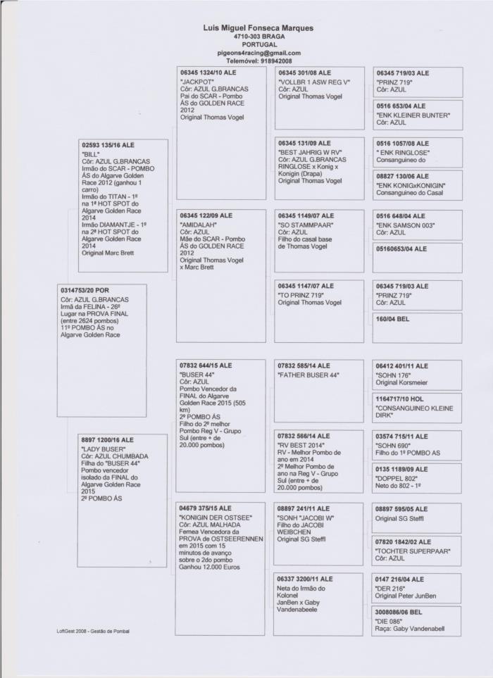 Nesta familia de vencedores de DERBYS, um irmão do pai foi POMBO ÁS no Golden race 2012 e outro irmão foi 2º POMBO ÁS no golden Race 2015, outro irmão em 2014 ganhou 2 provas de HOT SPOT no Golden Race. Como se não fosse já suficiente, a mãe da FELINA só é filha do BUSER que ganhou a FInal do Golden Race em 2015, cruzado com uma fêmea que também ganhou a prova final de um DERBY no leste europeu com 15 minutos de avanço sobre o 2do classificado.
