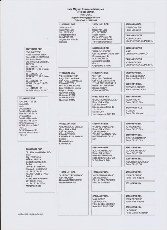 Para os apreciadores desta linha com resultados relevantes em amadores dispersos por vários distritos de Portugal ou mesmo em Derbys, está disponível este macho azul , filho direto do GOLD KITTEL, também ele um reprodutor confirmado com pelo menos 3 filhos a vencer 1ros prémios em diferentes pombais do distrito do PORTO. Irmão de NINHO do 7º Classificado na Semi Final do DERBY DE RIAS BAIXAS 2020!
