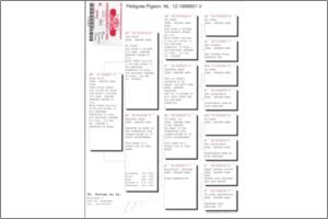 "O YOUNG GENERAL Peixoto" Raça: Gaby Vandenabelle Côr: PEDRADO Neto do Irmao do KOLONEL (1º Pombo AS de Fundo 1995) Neto do YOUNG KANNIBAL (Avelar & Lobato)