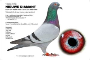 "NIEUWE DIAMANT" VITOR PICANÇO BLAUW ALL FAMILY ARE SUPER RACERS AND SUPER BREEDERS ! FATHER IS H.BROTHER TO ROYAL BULLET: 1º INT PROV ACE SD`14 4ª INT PROV ACE SD`14 MOTHER WON: 268KM IPROV 1/5798 268KM GERAL 9/10459 FAS PARTE DO QUADRO REPRODOTOR POMBAL FUERTE