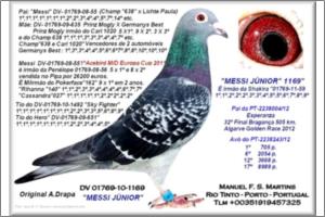 Macho POMBO IMPORTADO A MANUEL MARTINS RIO TINTO PORTO LINHA RONALDO DRAPA X SARITA (LINHA 128) 1º CANAL CAVEIRA YEARLINGS 337 KM SOBRINHO DO 217 1º 5º8º9º 14º 14º 1º CAMP. VELOCIDADE, GERAL, BLOCO 8500 POMBOS PRIMO 214 1ºPREMIO CASTELLON NO DERBY DE MURCIA NETO DO STAR RONALDO 1º 1º 3º 4º 5º 6º 6º