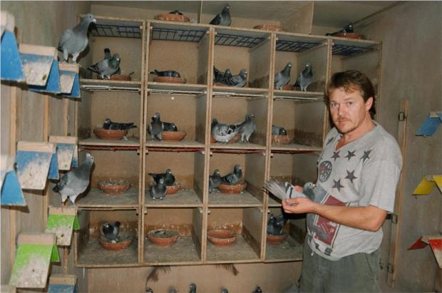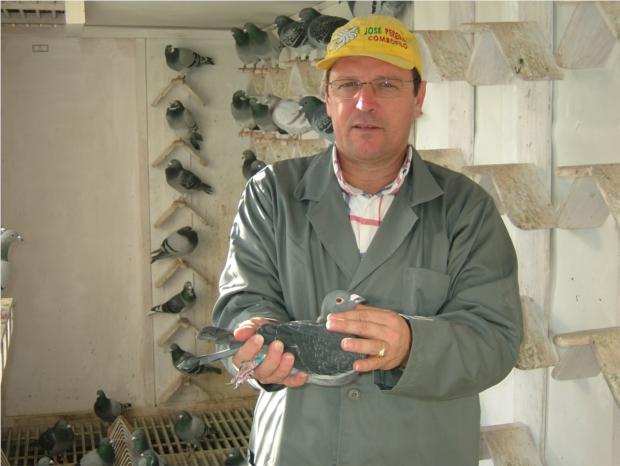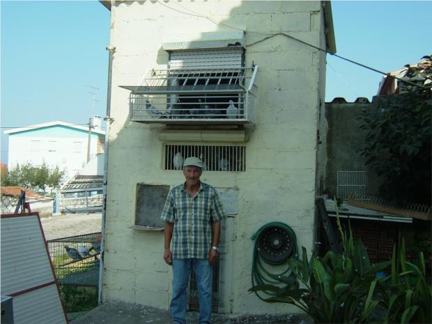 Amador, José Júlio Soares com a licença federativa nº 48945 da Sociedade Columbófila da Areosa em Viana do Castelo junto das suas modestas instalações. Um homem especial, e um columbófilo especial que demonstra um enorme carinho pelo pombo correio. Pessoa, por quem eu tenho uma particular admiração.